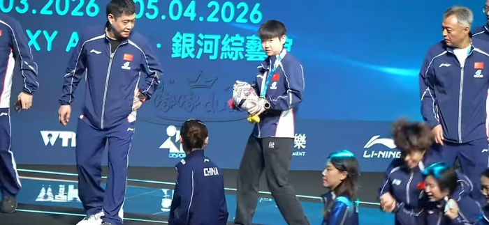 而此时,孙颖莎的主管教练邱贻可就非常暖心了。在颁奖合影的时候,站在前面的是王励勤、秦志戬、王皓、马琳这样带有职务的,而作为男女单世界杯冠军,孙颖莎、王楚钦都是站在第一排的,而邱贻可指导是站在最后一排的。